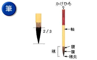 半紙に書くときの筆は、墨を穂の 3分の2 くらいふくませましょう。